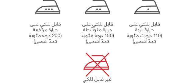 - اكويها عند درجات حرارة منخفضة كما هو مدون على بطاقة العناية.